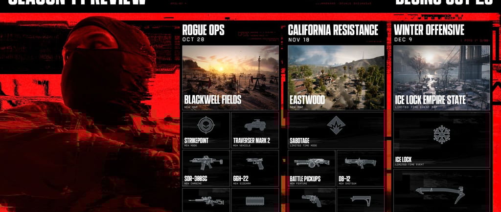 Encerrando o ciclo, a Ofensiva de Inverno, prevista para 8 de dezembro, chega com o mapa Ice Lock Empire State — disponível por tempo limitado —, o modo Ice Lock (também temporário) e uma nova arma corpo a corpo para combates mais intensos.